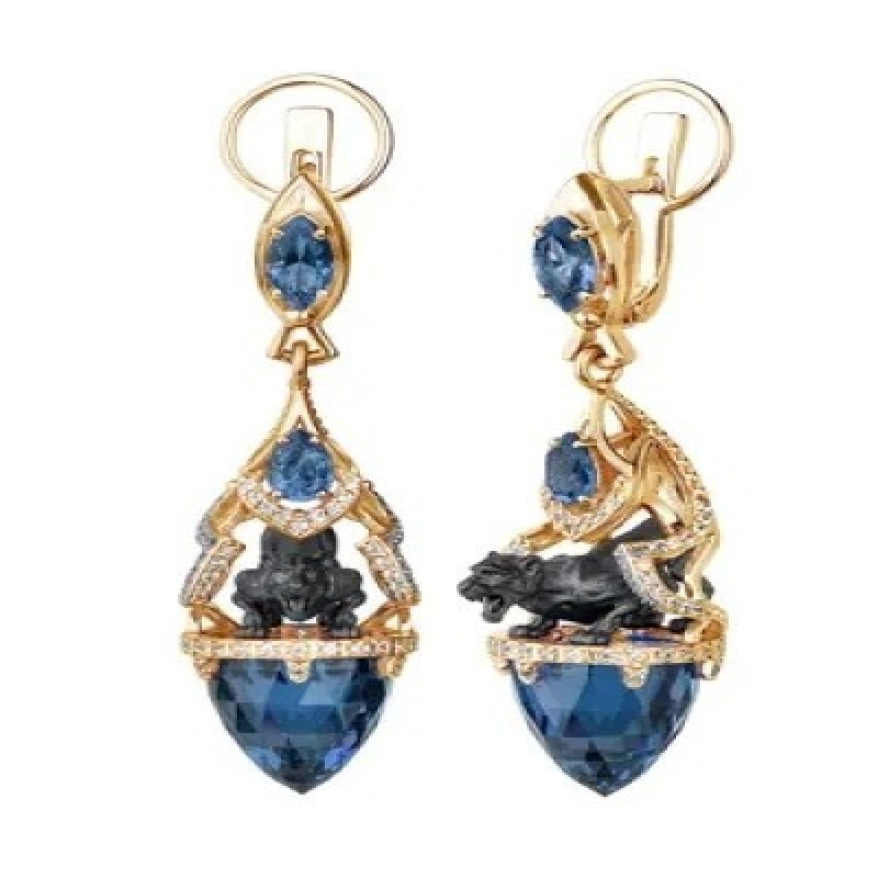 Ди АРС Серьги Дикая природа из золота с лондон топазом и бриллиантами